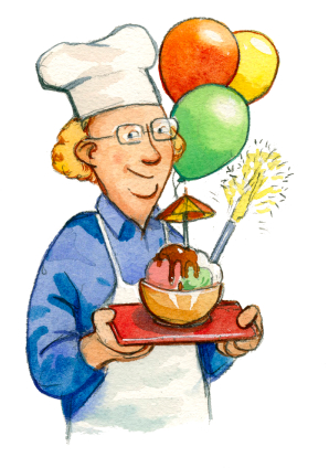 Bagar Birgits kalas Bagar Birgit är Djupforsens fantastiska bagare som ser till att det alltid finns gott fika till alla som vill ha.På Bagar Birgits kalas firas du med hennes favoritglass.